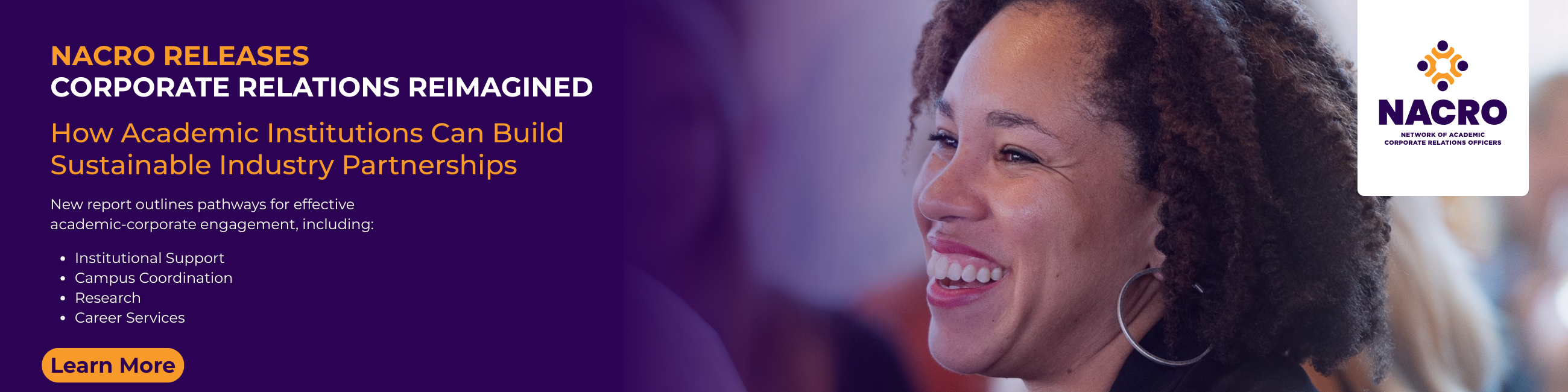 New Report: CORPORATE RELATIONS REIMAGINED: How Academic Institutions Can Build Sustainable Industry Partnerships. Read more.